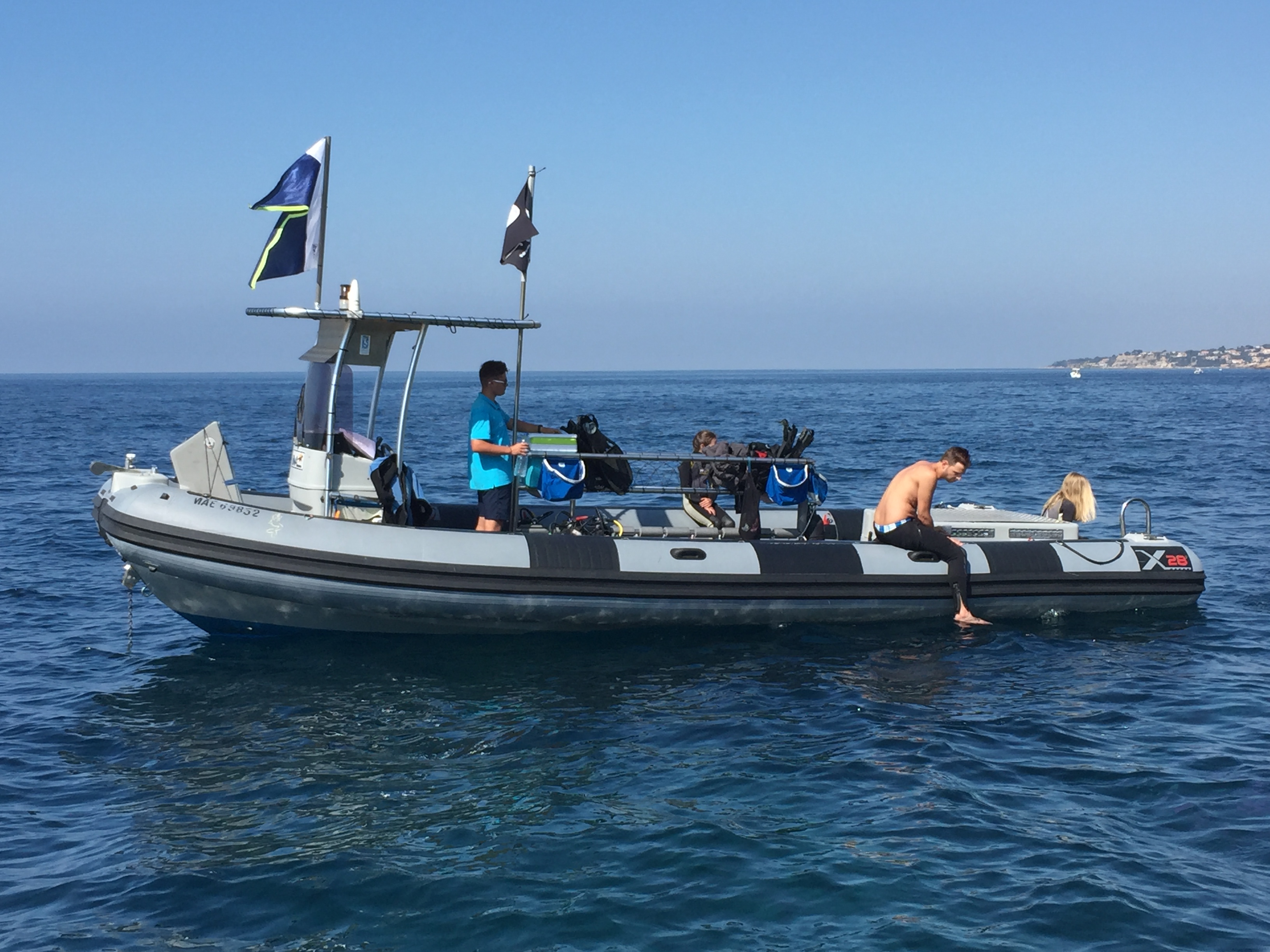 | "HADES" est un semi-rigide de 7,50m sur lequel nous embarquons maximum 19 plongeurs. |